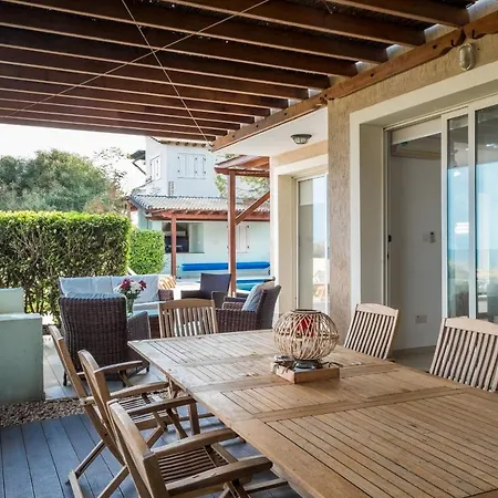 Wyposażona kuchnia, wraz z miejscem do jedzenia, są dostępne do spożywania posiłków. Do dyspozycji Gości są również kuchenka mikrofalowa, czajnik elektryczny i lodówka. Restauracja Pyrillis, w której serwowane są dania kuchni greckiej, leży w nie więcej niż 1 km. Opcje transportu w okolicy obejmują dworzec Konnou - Kirkis 1, w odległości 5 min spacerem. W willi dostępne są samochody do wynajęcia. Oferuje szeroki wachlarz udogodnień dla gości, w tym park wodny, sprzęt do barbeque i ogród. Pobliskie atrakcje obejmują windsurfing, nurkowanie i jazdę konną.